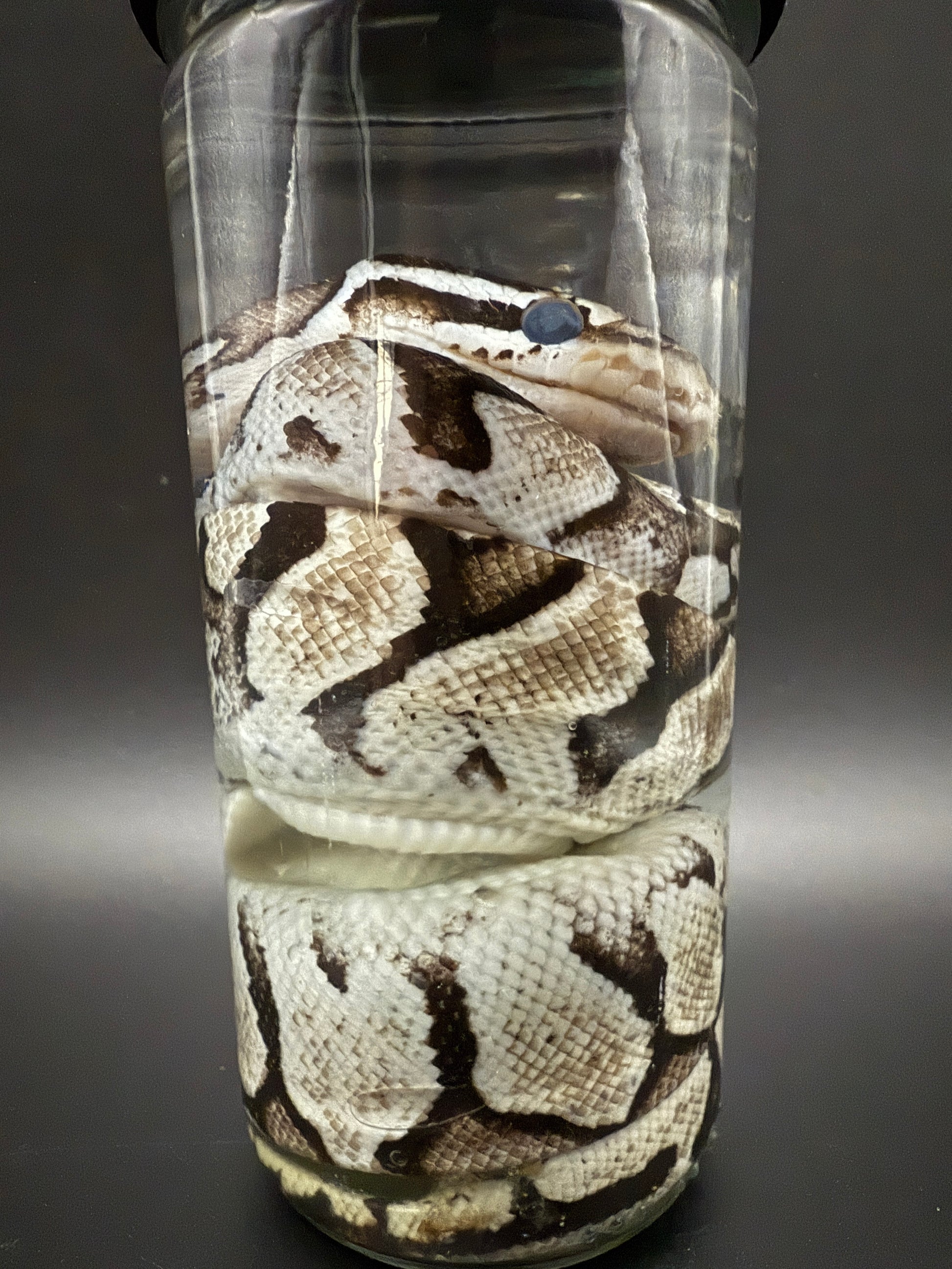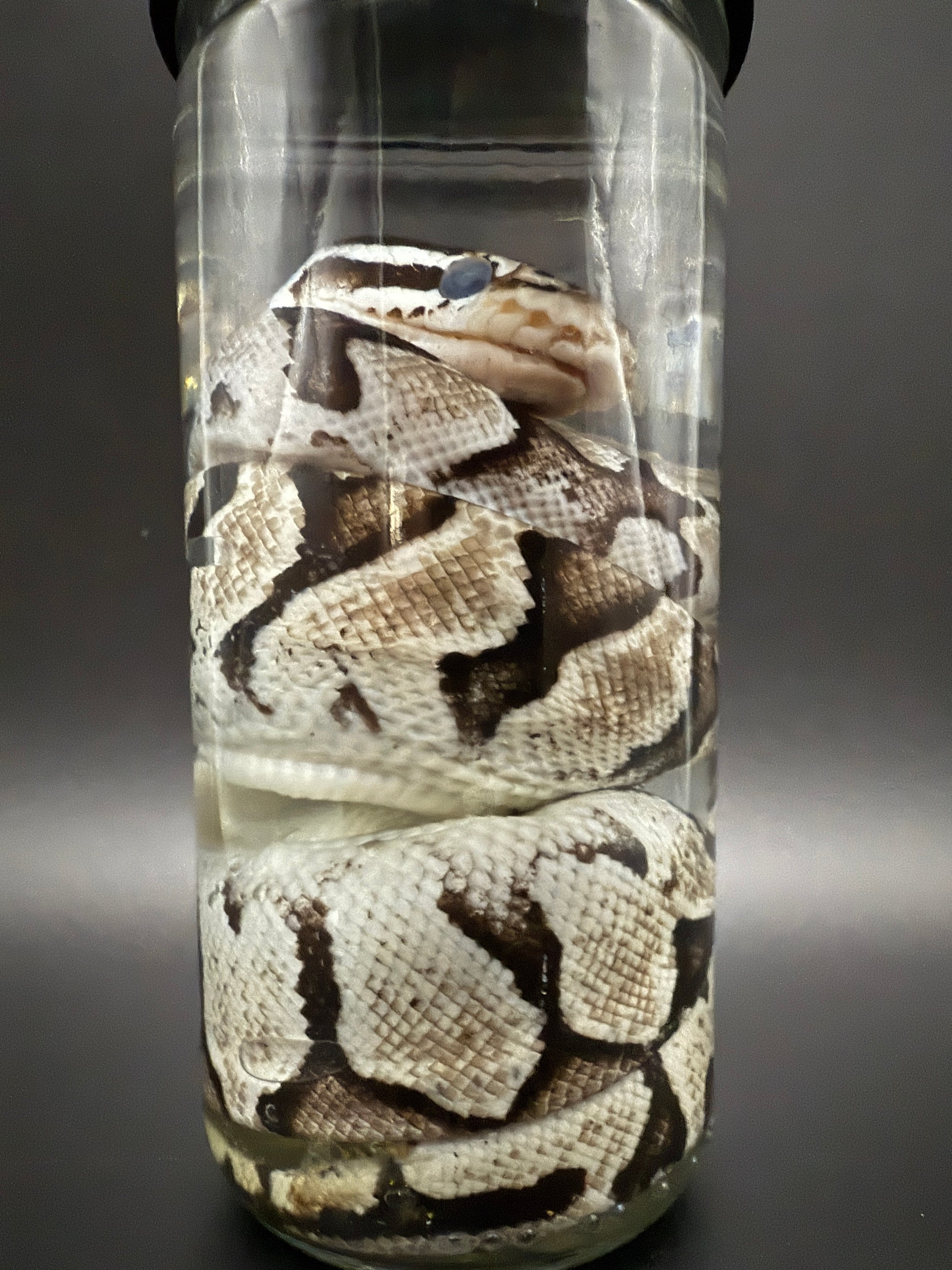 Unique, ready to ship wet specimen ball python is a one-of-a-kind item, you will receive the pictured item.